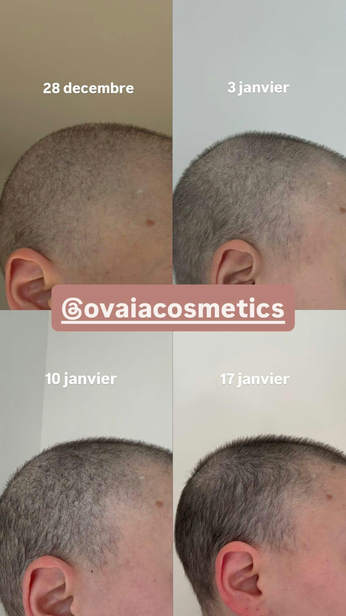 Elle apprécie beaucoup la texture agréable, l’odeur douce, et le fait que le sérum ne laisse pas les racines grasses lorsqu’il est bien massé après l’application. Elle recommande ce sérum à celles qui souhaitent soutenir la repousse de leurs cheveux de façon douce et naturelle. Merci Ovaia❤️